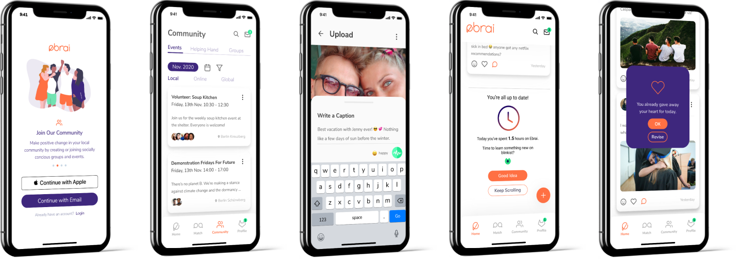 This experience was incredibly valuable. The time was very limited, and the goal wasn’t an easy one. We trusted the process, went along with it, and we were all surprised by the outcome we had generated. A 6-day Design Sprint is difficult to coordinated, especially with everyone’s busy schedule. If I did another sprint, it would be mandatory for each participant to be available the entire time. Our collaboration was phenomenal, but it would have been good to keep a better time boxing. We often got stuck in lengthy discussions, resulting in long days because the schedule wasn’t followed. I do believe that we achieved our goal, not by reinventing the entire social media world, but by implementing some features which remind people to go out, enjoy life, learn something new, have meaningful discussions, do good by joining a community event or commenting positively and not getting obsessed by the number of likes or comments.